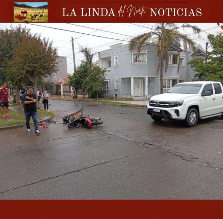 Salta Capital – Este sábado al mediodía se produjo un accidente vial en la esquina de Juan Marocco y Alvarado, en el barrio El Periodista. El hecho involucró a una camioneta Volkswagen Amarok y una motocicleta de 110 cilindradas.