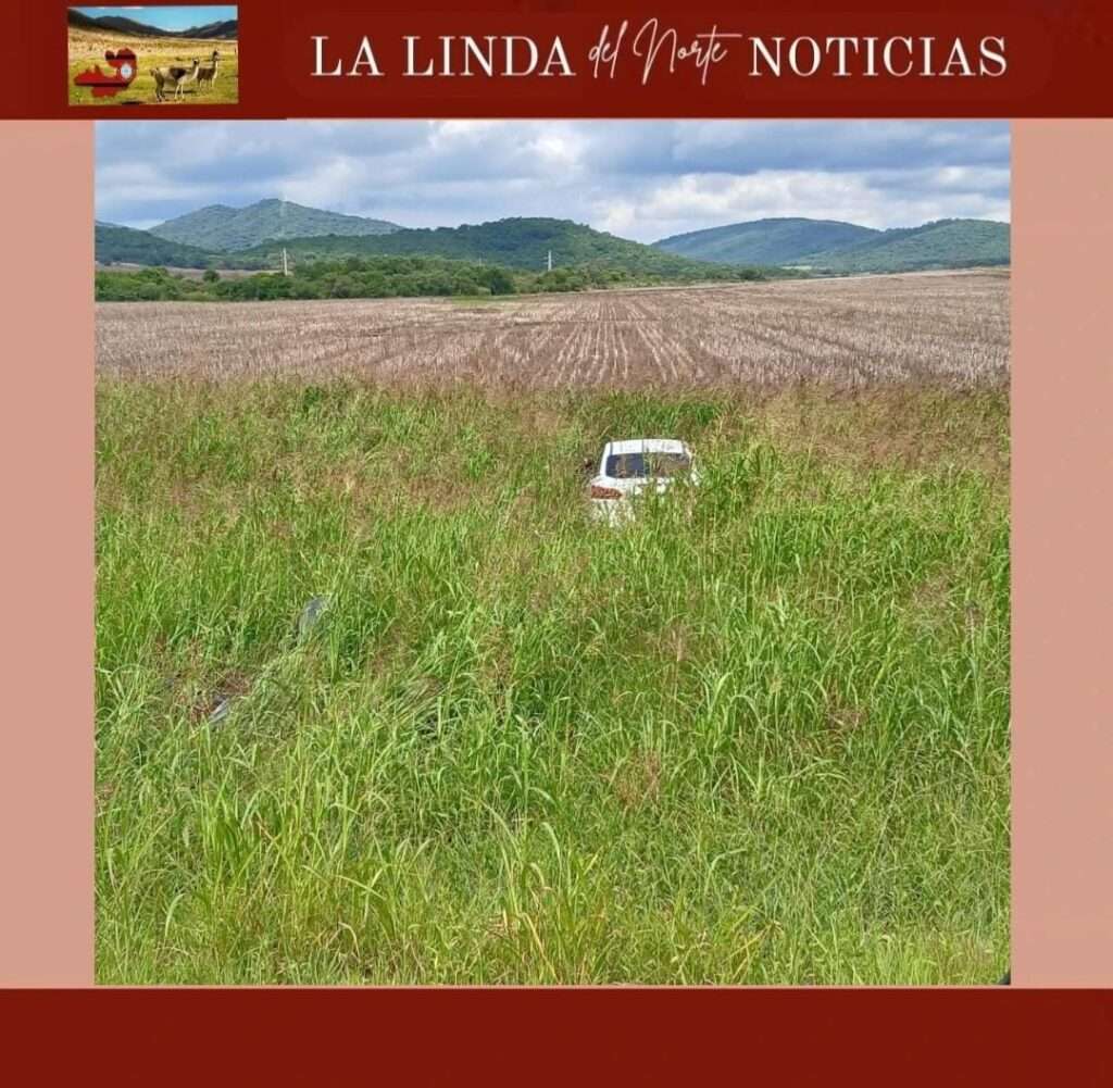 Un automóvil Volkswagen blanco perdió el control y terminó ingresando en una finca ubicada junto a la ruta. El vehículo era conducido por una mujer adulta, quien estaba acompañada por un menor de aproximadamente 5 años.