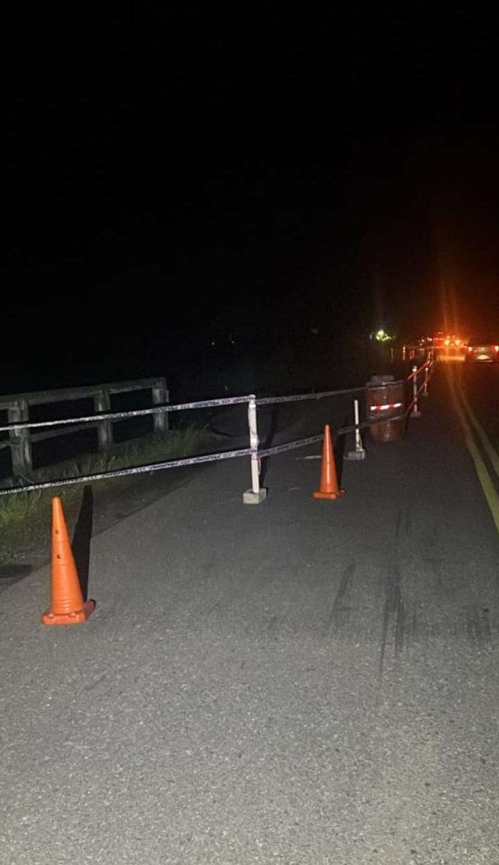 En el lugar trabajan efectivos de Seguridad Vial y personal de la Comisaría 1, realizando controles de reducción de velocidad para prevenir derrumbes o siniestros hasta que se concreten las reparaciones.