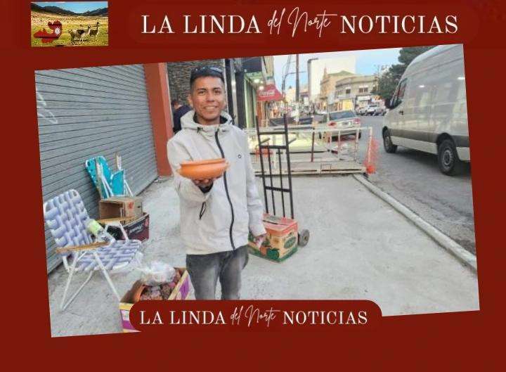 Kevin llegó desde Salta y se instaló en pleno centro de la ciudad patagónica. Ofrece productos a precios accesibles y permanecerá hasta el miércoles.