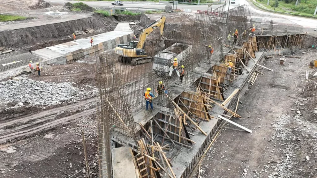 En paralelo, se realiza el llenado con hormigón de las bases de los estribos del puente ubicado en el nudo con la RP 24, y comenzaron las excavaciones para el puente que se emplazará en la intersección con la RP 23.