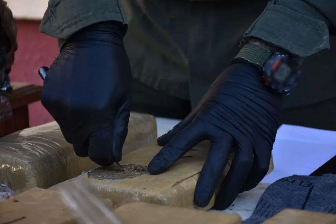 Con la ayuda del perro antinarcóticos “Tango”, los uniformados hallaron 75 bultos ocultos entre puertas de aluminio. En total, se contabilizaron 1.690 paquetes tipo “ladrillo” que, tras las pruebas de narcotest, arrojaron resultado positivo para cannabis sativa. El pesaje final confirmó un total de 1.499 kilos con 289 gramos de marihuana.