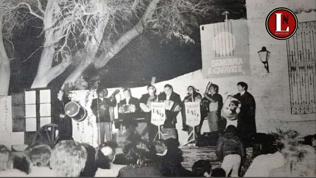 En esta ocasión, recordamos con cariño la primera edición de la Serenata, allá por el año 1974. En la histórica foto, podemos ver el gran escenario levantado en una esquina céntrica de Cafayate, específicamente en la esquina de San Martín y Mitre. En ese escenario, el talentoso Marcos Tames y su conjunto «El Chañarcito» deleitaban al público con su música.