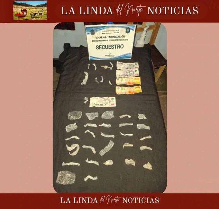 Durante el procedimiento, los efectivos secuestraron nueve envoltorios con una sustancia amarillenta compatible con pasta base de cocaína, además de dinero en efectivo y recortes de polietileno transparente, comúnmente utilizados para el fraccionamiento de la droga.