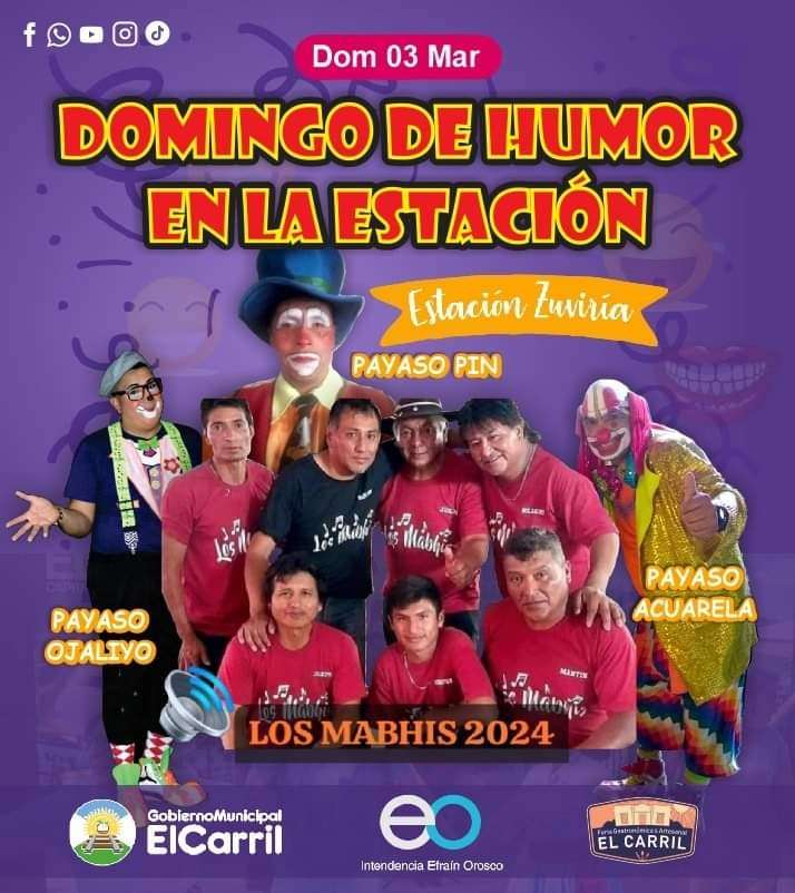 ¡Prepárate para una jornada llena de entretenimiento y sabores auténticos en la estación Zuviria este domingo 3 de marzo a partir de las 11Hs! Los payasos Pin, Ojaliyo y Acuarela te harán reír con sus travesuras, mientras que el grupo Los Mabhis pondrá ritmo a la tarde con su música en vivo.