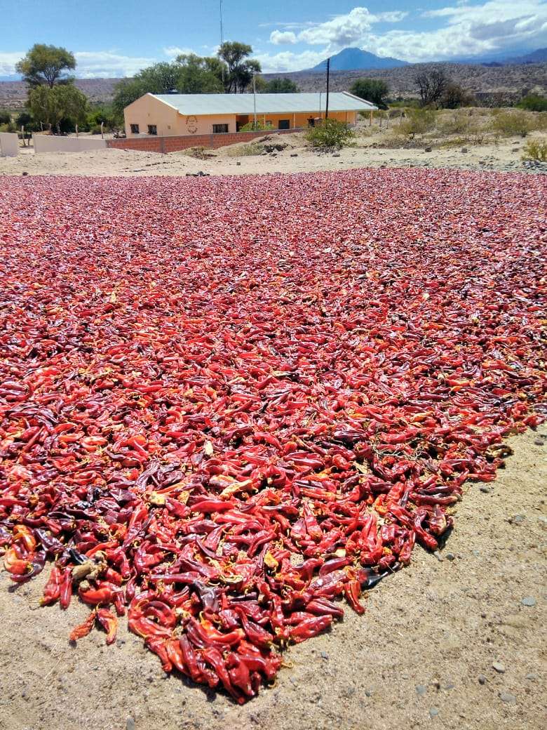 La postal de los pimientos extendidos como un manto rojo sobre la tierra es una imagen típica del otoño en los Valles Calchaquíes. En cada rincón llano o ladera soleada, los frutos se secan con paciencia y tradición, convirtiendo al paisaje en un verdadero mar rojo que maravilla a quienes visitan la región.