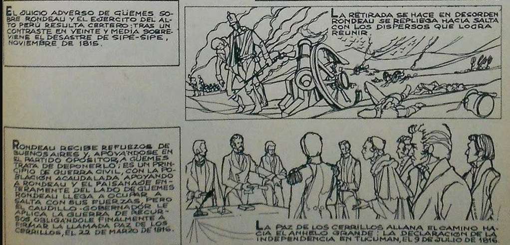 “En nuestro próximo número presentaremos: ‘Güemes, El Guerrillero’, la increíble resistencia gaucha a las invasiones realistas. ¡Selvas, quebradas, barrancos, escenarios indómitos de una EPOPEYA única en la Historia Universal”, anticipaba la primera entrega de la revista, destinada a contar “Chacabuco, el combate de vida o muerte de la independencia americana”.