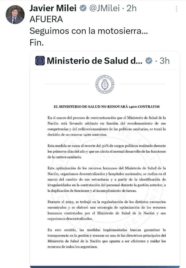 El Ministerio de Salud de la Nación, liderado por Mario Lugones, informó que no renovará 1.400 contratos en el marco de un proceso de reestructuración orientado al «reordenamiento de competencias y políticas sanitarias». La medida fue justificada por irregularidades detectadas en la contratación de personal durante la gestión anterior, así como por duplicaciones de funciones y el incumplimiento de tareas por parte de algunos trabajadores.
