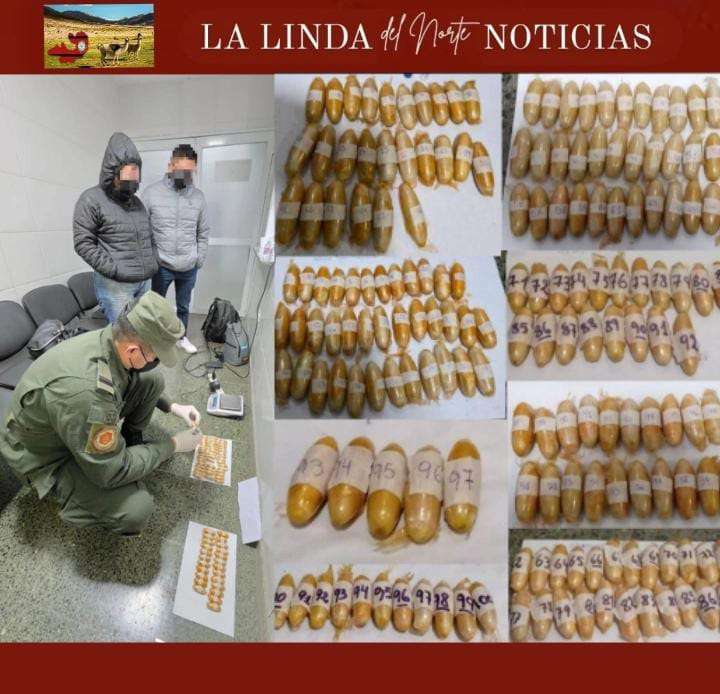 Dos ciudadanos de nacionalidad boliviana fueron detenidos en Tucumán tras ser descubiertos con 197 cápsulas de cocaína ingeridas, que totalizaban 2 kilos 244 gramos del estupefaciente. El hallazgo se produjo en un control de Gendarmería Nacional sobre la Ruta Nacional 9, a la altura del peaje Molle Yaco, en el norte de la provincia.