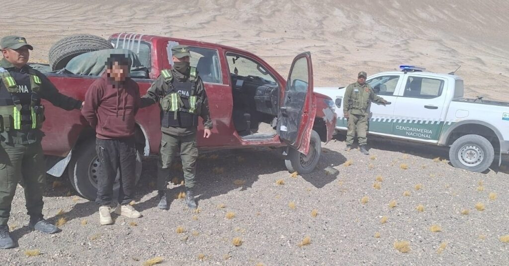 Personal de la Sección Núcleo del Escuadrón 22 detectó dos camionetas que ingresaban desde el vecino país a alta velocidad, en inmediaciones del hito “XVI – X” y del Volcán Salín. Al intentar detenerlas, uno de los vehículos logró evadir el control, mientras que el acompañante de la segunda camioneta intentó huir a pie, pero fue alcanzado por los gendarmes.