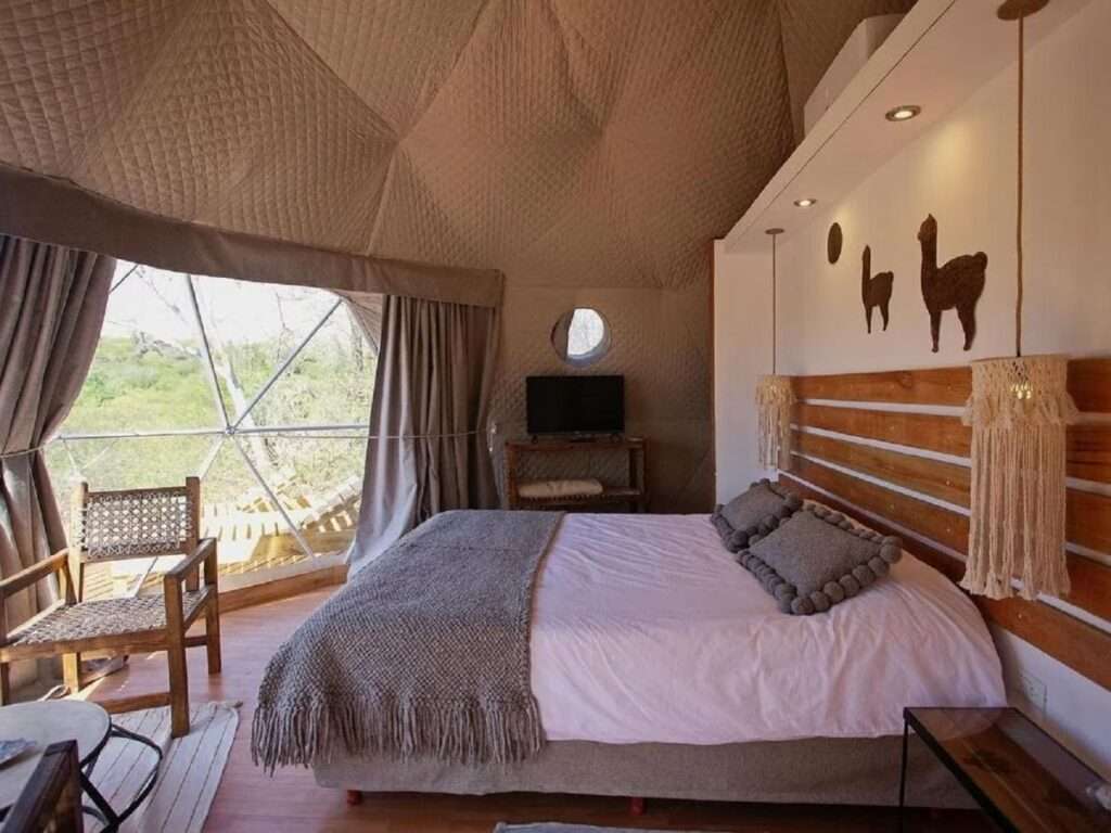 Ubicado en el barrio La Ernestina, camino al cementerio municipal, se halla este tipo de hospedaje llamado “glamping”, que surge de la combinación entre las palabras “glamour” y “camping” y se trata de unos domos de diseño ecológico en contacto con la naturaleza del lugar.