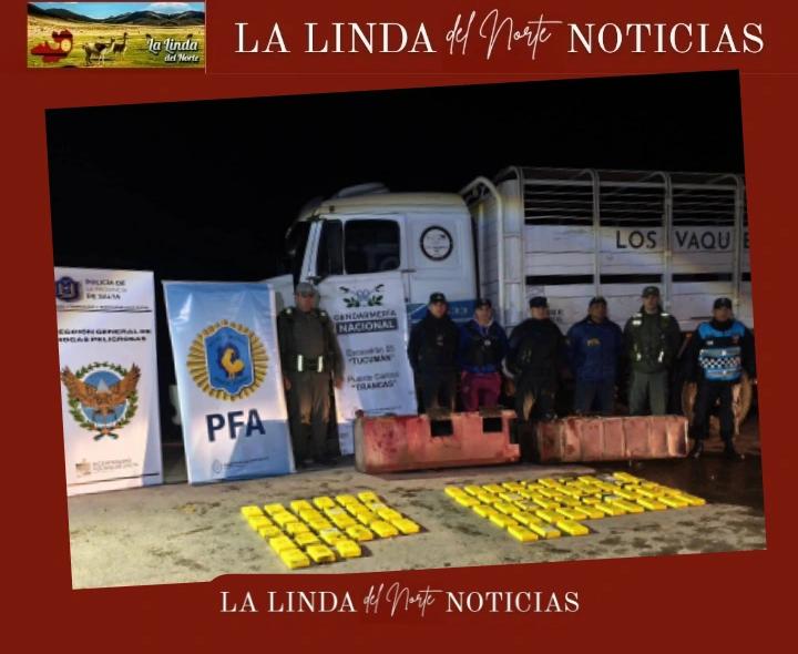 La Policía de Salta, en un operativo conjunto con la Policía Federal Argentina y Gendarmería Nacional, logró secuestrar más de 70 kilos de cocaína y detener a tres hombres mayores de edad en un control vehicular.