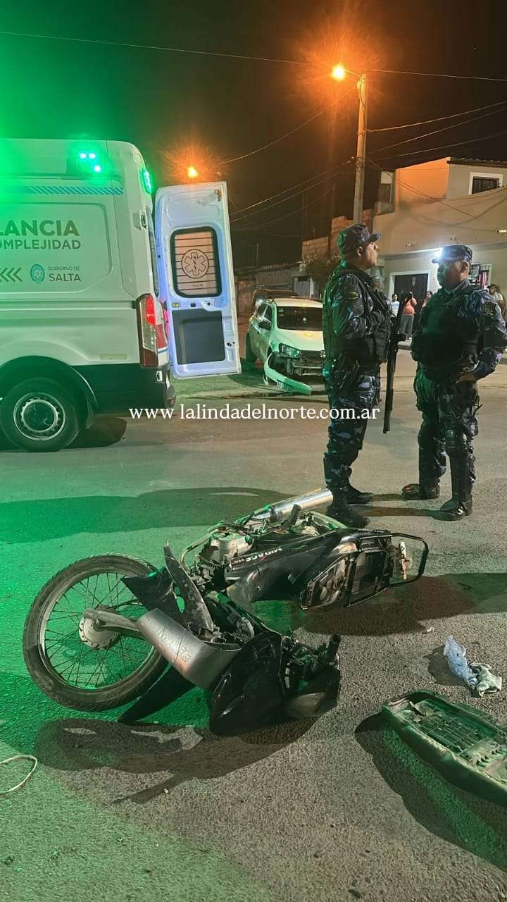 Producto del impacto, la conductora de la moto fue trasladada al Hospital San Bernardo, mientras que la menor fue derivada al Hospital Público Materno Infantil. Según informaron fuentes médicas, ambas presentan traumatismo encéfalocraneano (TEC) y politraumatismos.