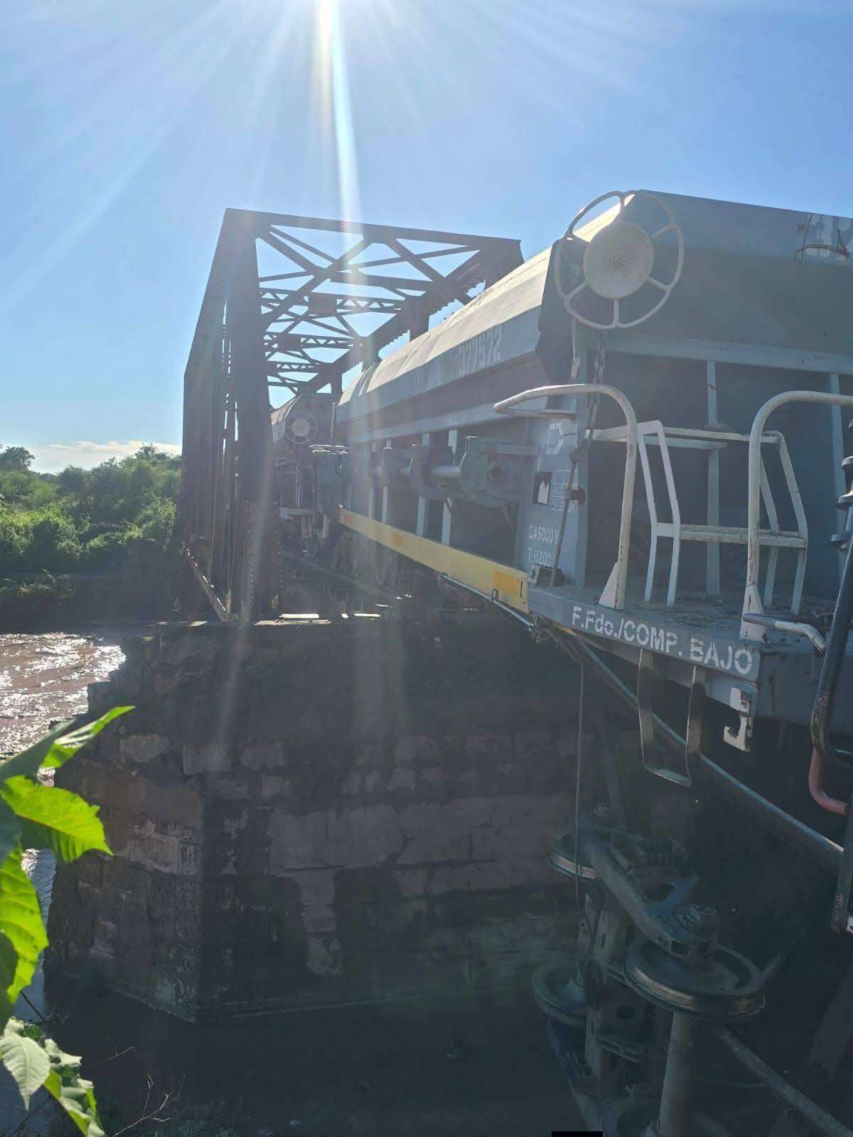 Según los primeros reportes, la locomotora —de origen chino— habría golpeado la estructura del puente debido a una socavación provocada por las intensas lluvias de los últimos días. Como consecuencia, varios bogies quedaron colgando, aunque de manera fortuita los vagones no cayeron al lecho del río.