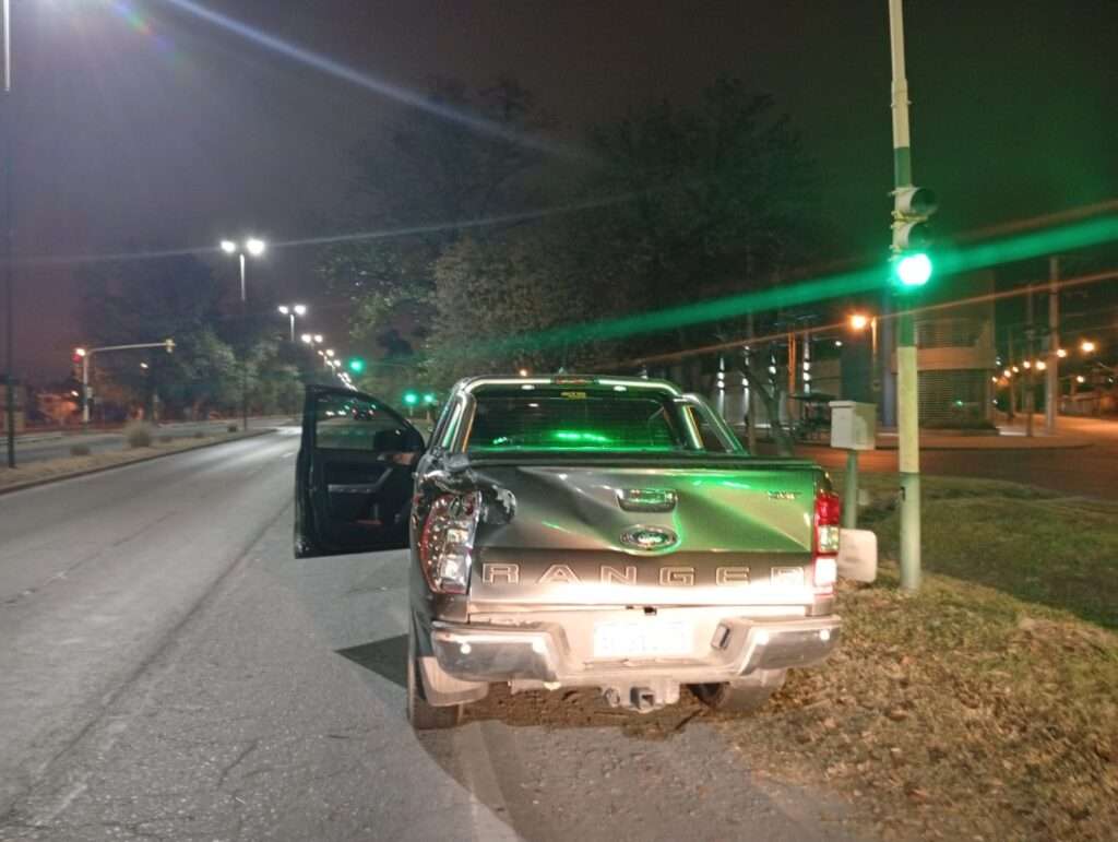 Según declaró el propio chofer de la línea 6D, intentó cruzar el semáforo en rojo para «ganarle» el paso, pero terminó colisionando violentamente con una camioneta Ford Ranger 4×4 que circulaba por avenida Tavella.
