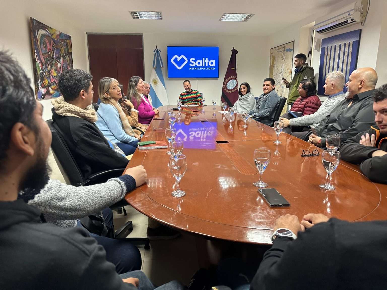 Esta mañana, el intendente Emiliano Durand se reunió con referentes de la Cámara de Pequeños y Medianos Empresarios de Salta (CPyMES), donde firmó un acta de colaboración con el presidente de la institución, Walter Álvarez, para la incorporación de CPyMES a la iniciativa municipal “El mercado en tu barrio”.