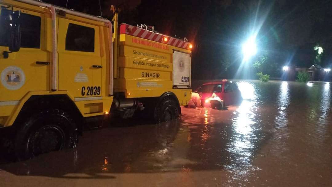 En barrio Congreso auxiliaron a una familia cuyo vehículo 🛻era arrastrado por el agua en la calzada. Fue un trabajo en coordinación con Bomberos Voluntarios de Cerrillos. Situación similar se registró en barrio La Lonja en Capital.