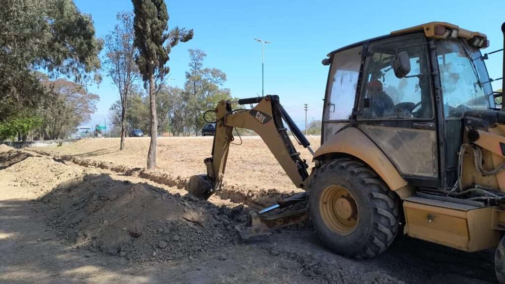 El proceso de apertura del canal está siendo ejecutado con maquinaria pesada, específicamente con una pala retroexcavadora, para retirar los sedimentos y restaurar el flujo adecuado del desagüe. Estas acciones buscan asegurar un drenaje eficiente del agua de lluvia, reduciendo el riesgo de anegamientos en la zona.