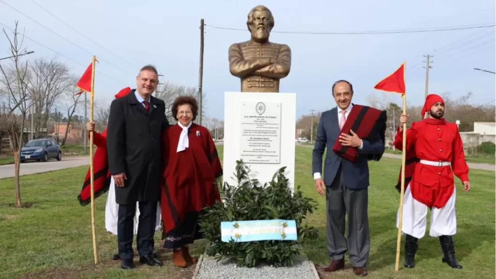 En un acto cargado de simbolismo patriótico, la ciudad de General Madariaga inauguró una escultura de Martín Miguel de Güemes en la intersección de calles Catamarca y 37, uno de los nuevos accesos al distrito. La obra fue donada por el Pueblo y Gobierno de Salta y se formalizó con la colocación de una placa que deja constancia del gesto en nombre del gobernador Gustavo Sáenz.