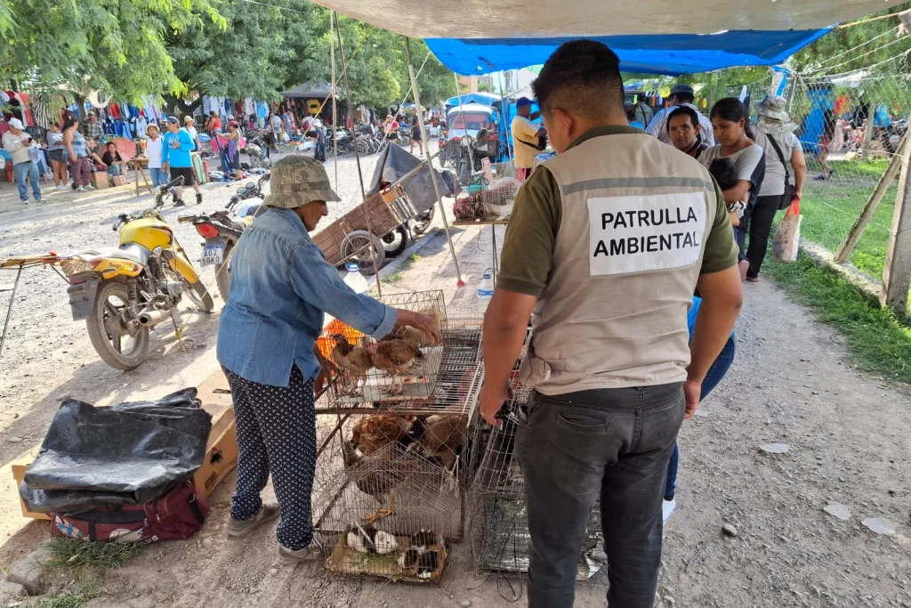 La Municipalidad de Salta llevó a cabo un operativo especial en la feria barrial de Solidaridad, tras denuncias de vecinos sobre la presencia de animales encerrados en cajones plásticos de verduras y jaulas metálicas.