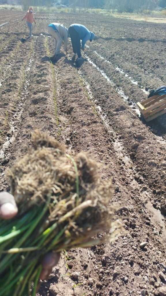 En la localidad de Payogasta, la familia Villanueva dio inicio a la plantación de cebollas y la siembra de zanahorias en Finca El Álamo, una de las unidades productivas que forman parte del entramado agrícola del Valle Calchaquí.