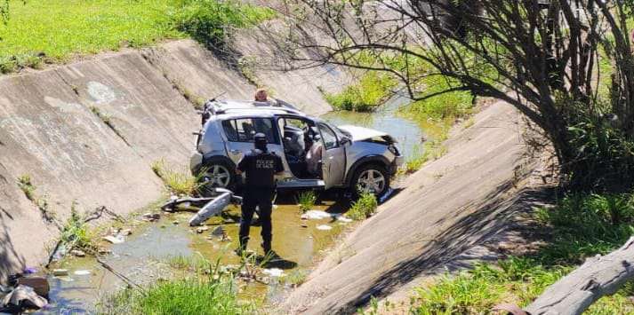 Por causas que aún se investigan, el vehículo despistó y finalizó su recorrido dentro del canal. Como consecuencia del impacto, el conductor sufrió politraumatismos y debió ser asistido en el lugar por personal del SAMEC.