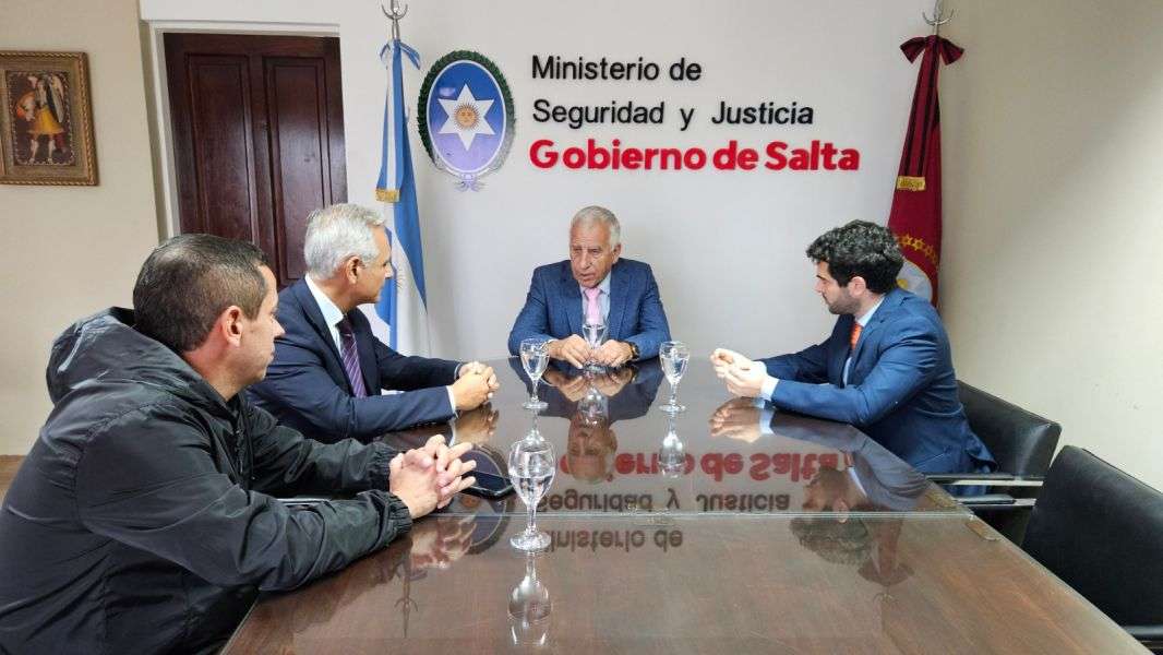 Esta mañana el ministro de Seguridad y Justicia, Marcelo Ramón Domínguez, se reunió con el subsecretario de Lucha contra el Narcotráfico del Ministerio de Seguridad de la Nación, Ignacio Cichello, el director Nacional de Investigaciones Criminales contra el Narcotráfico, Raúl Contreras, y el coordinador regional del Grupo de Operaciones Conjuntas del Noroeste Argentino, Antonio Serrano, para avanzar en acciones concretas que potencien la capacidad operativa del GOC NOA.