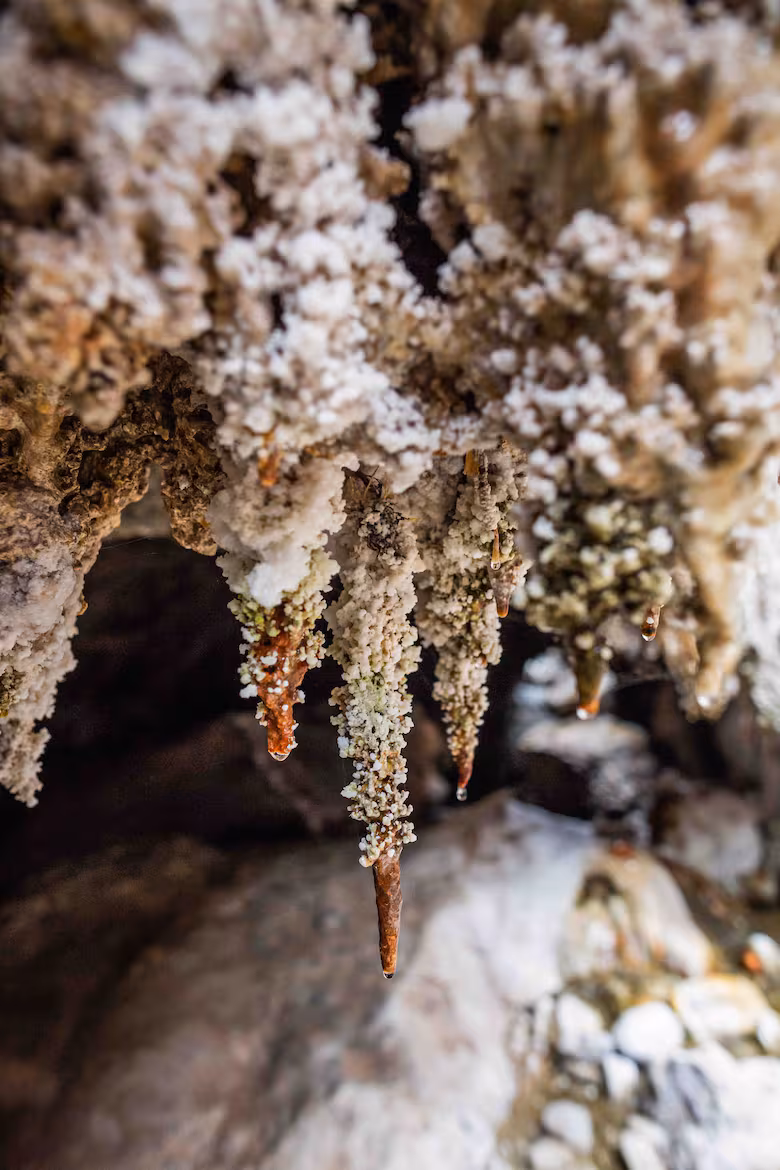 Las cavernas que albergan al Puente del Diablo son un testimonio vivo del poder transformador de la naturaleza. La erupción de los volcanes gemelos dio origen a esta maravilla, cuando la lava solidificada obstruyó el paso del río, creando túneles naturales de más de 100 metros de largo. El resultado es un espectáculo en sí mismo: estalactitas y estalagmitas que cuelgan del techo y adornan las paredes de la caverna, creando escenas propias de una película de ciencia ficción.