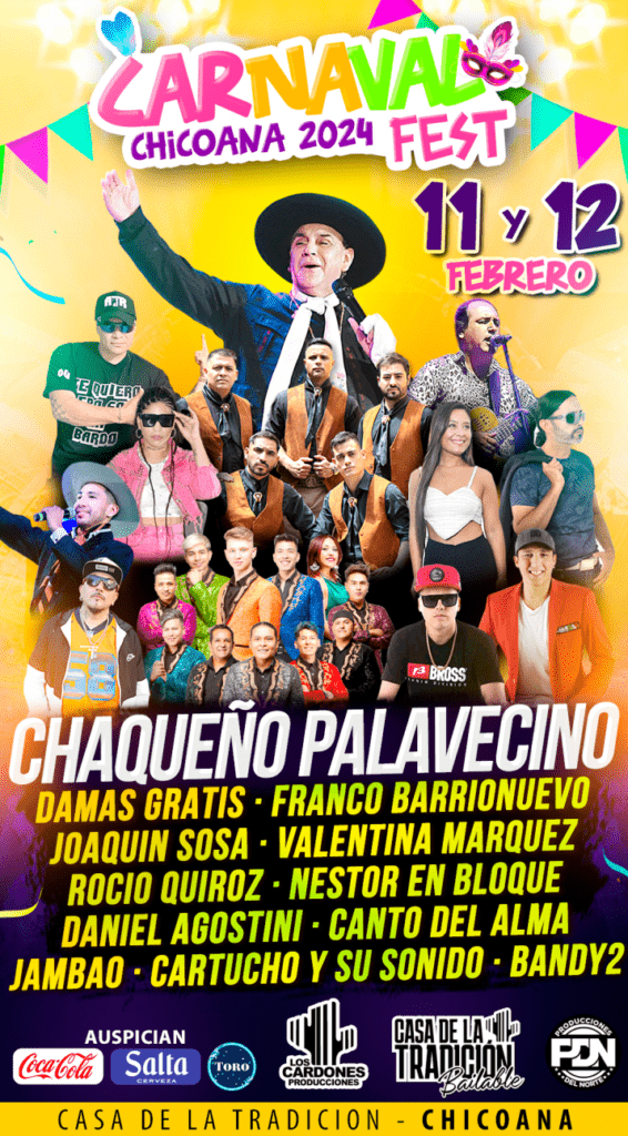 El espíritu festivo del carnaval llega a Salta con una propuesta imperdible para los días 11 y 12 de febrero. Bajo la influencia de la carpa tradicional, en la localidad de Chicoana se dará inicio al gran carnaval 2024, un evento donde la gente podrán disfrutar de la música, los artistas y la alegría de sus interpretaciones.