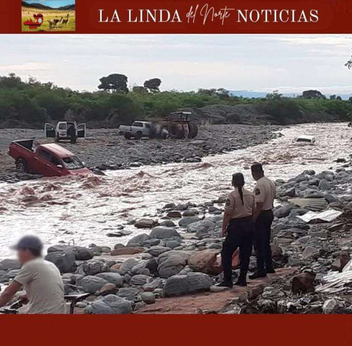 Según se informó, el hecho se produjo cuando los conductores intentaron cruzar el río por un camino que quedó anegado debido a las intensas lluvias de los últimos días.