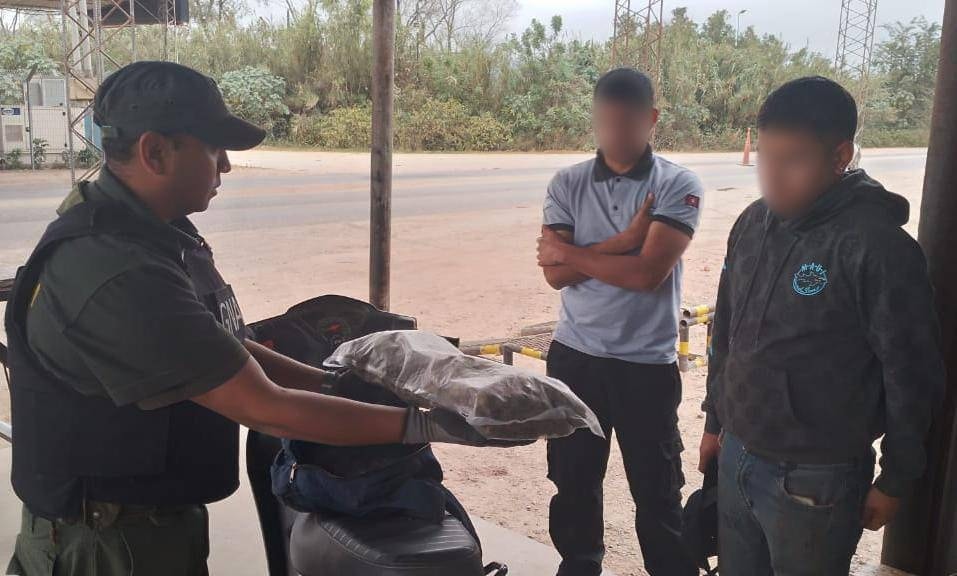Tras un seguimiento controlado, los uniformados detuvieron el rodado y constataron que los hombres transportaban una mochila con paquetes que contenían una sustancia vegetal amarronada. Las pruebas de campo de Narcotest confirmaron que se trataba de cannabis sativa, con un peso total de 3,793 kilos. Ambos fueron detenidos en el marco de la Ley 23.737 de Estupefacientes.