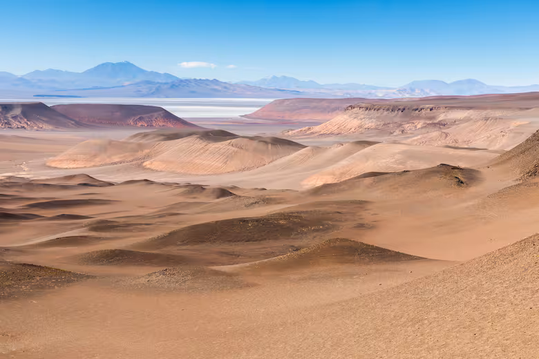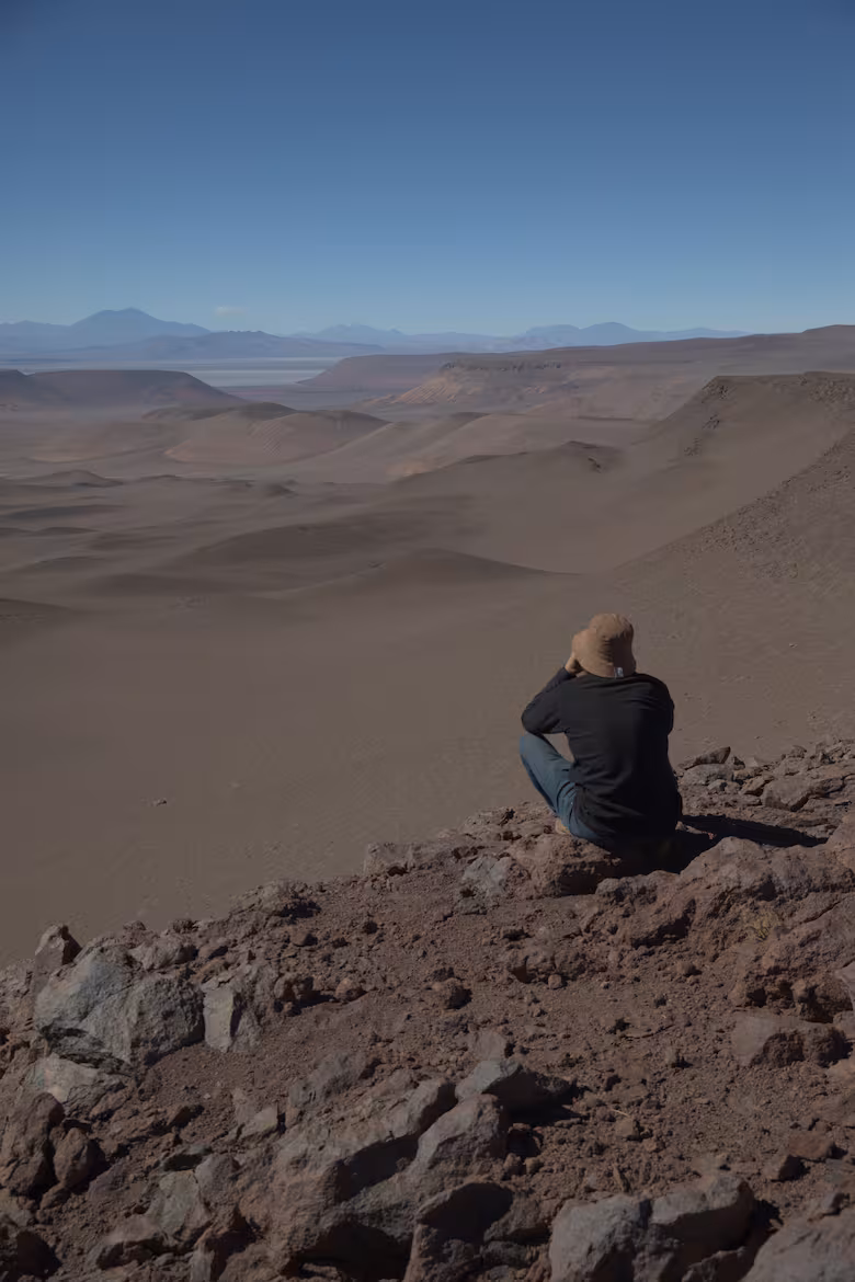 Volvemos al ruedo. Un poquito más adelante comienza el tramo conocido como las “Siete Curvas”, un camino zigzagueante que serpentea a través de las dunas fósiles, adornadas con miles de picos de arcilla y cristales de yeso. Desde aquí, tenemos 45 kilómetros más hasta llegar a Tolar Grande, el pueblo donde haremos base y donde, por suerte, el Wi-Fi se atora después de las 19 para dejar de funcionar. En el camino, el sol y el cielo dominan con su claridad puneña, tan característica, tan azul. Las vicuñas que corren asustadas, huyendo de nuestra presencia, pero en libertad.
