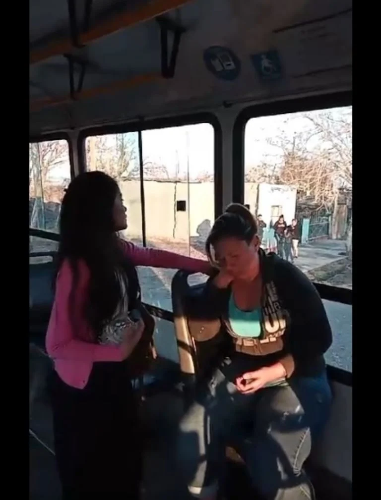 El propietario del Ford rojo que impacto contra una unidad de transporte público reaccionó violentamente contra las jóvenes cuando llegó al lugar.