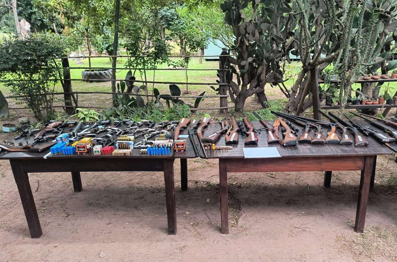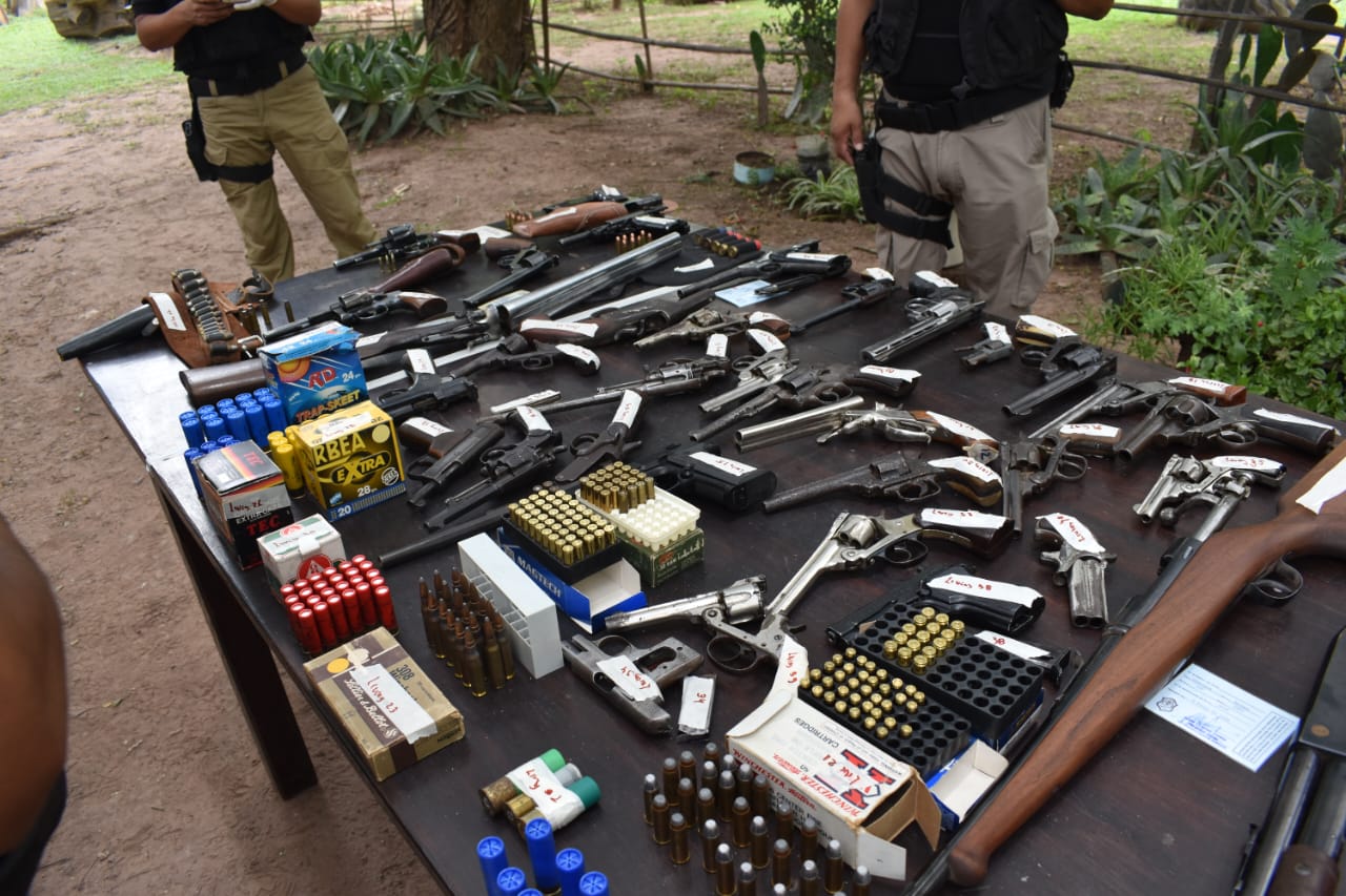 Por disposición judicial, se concretó el allanamiento en el inmueble, donde se secuestraron más de 55 armas de fuego, entre ellas escopetas, revólveres, carabinas, rifles y pistolas, además de más de 1.100 cartuchos de distintos calibres. También se hallaron granadas, otros explosivos, accesorios para armas largas, y elementos ópticos y mecánicos.