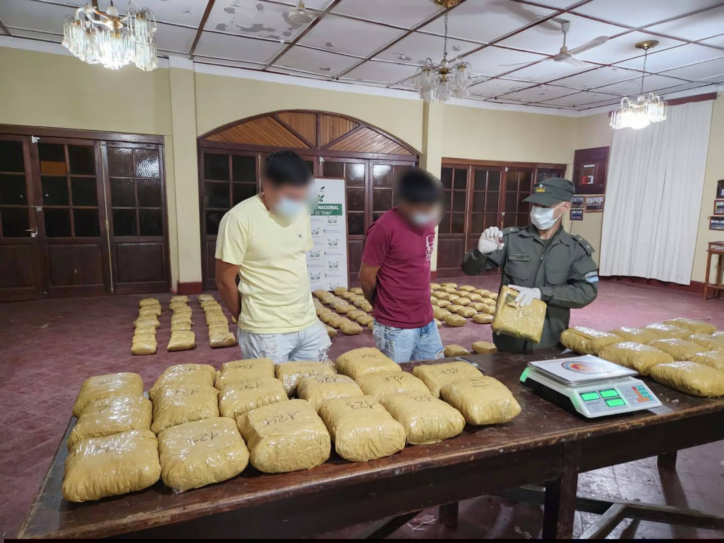En presencia de testigos, los efectivos abrieron los bultos y constataron la existencia de 200 paquetes amorfos que contenían cannabis sativa, con un peso total de 214 kilos con 230 gramos.