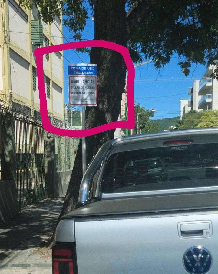 En el sector existen dos carteles claramente visibles que indican zona de uso exclusivo para ambulancias, destinada tanto al ingreso como a la salida de pacientes, muchos de ellos en camillas y sillas de ruedas. Sin embargo, una camioneta Volkswagen Amarok de color gris se encontraba estacionada en el área restringida, dificultando seriamente la atención médica.