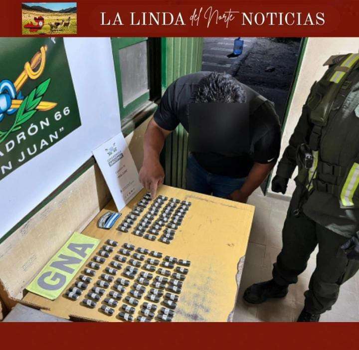 Durante la inspección del ómnibus por parte del Escuadrón 66 “San Juan”, los efectivos detectaron que uno de los pasajeros llevaba una riñonera con 100 cápsulas. Al ser sometidas a las pruebas de orientación de campo, se confirmó que se trataba de cocaína, con un peso total de 1 kilo 130 gramos.