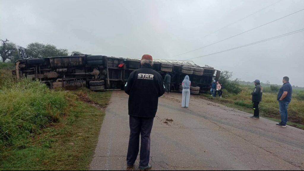Un camión volcó este martes sobre la Ruta Provincial 5, en el tramo comprendido entre las localidades de La Estrella y Pichanal, dejando como saldo un ocupante con lesiones leves.